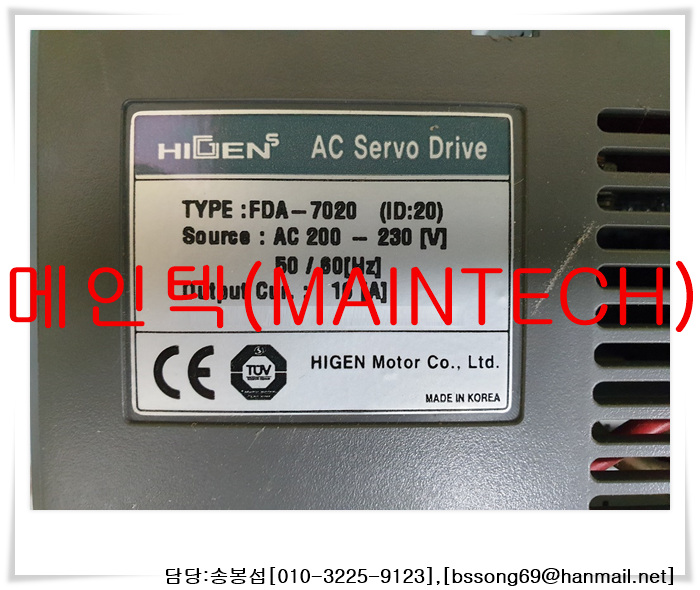 FDA-7020,Higen,ACServoDrive,AC200-230[V],하이젠,하이잰,에이씨서보드라이브,메인텍,MainTech,수리,판매,유지보수,개조,보유재고,전문업체,에러,Error,에러코드,ErrorCode,불량,오류,공장설비,공장자동화,외산설비