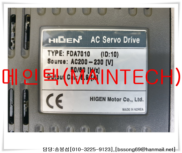 FDA7010,HIGEN,ACServoDrive,AC200-230[V],하이젠,에이씨서보드라이브,메인텍,MainTech,수리,판매,유지보수,개조,보유재고,전문업체,에러,Error,에러코드,ErrorCode,불량,오류,공장설비,공장자동화,외산설비