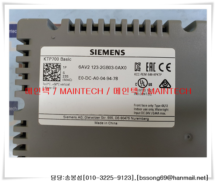 6AV2 123-2GB03-0AX0 KTP700 Basic Siemens E0-DC-A0-04-94-78 Simatic HMI Touch Panel 수리 판매 지멘스 시멘스 씨멘스 지마틱 시마틱 터치 판넬