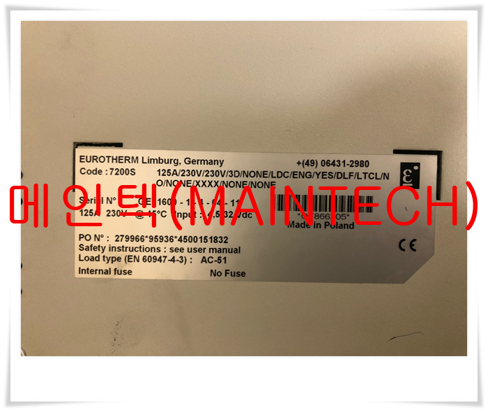 7200S/125A/230V/230V/3D/NONE/LDC/ENG/YES/DLF/LTCL/NO/NONE/XXXX/NONE/NONE/ 7100S / 7300S / Eurotherm / Solid State Contactor / 전문수리 판매 메인텍 / 유로썸 이유로썸 / 솔리드스테이트컨택터